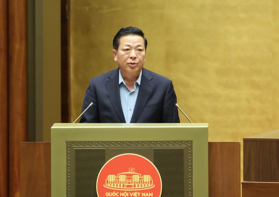 Bộ trưởng Bộ Xây dựng Trần Hồng Minh trình bày Tờ trình trước Quốc hội.